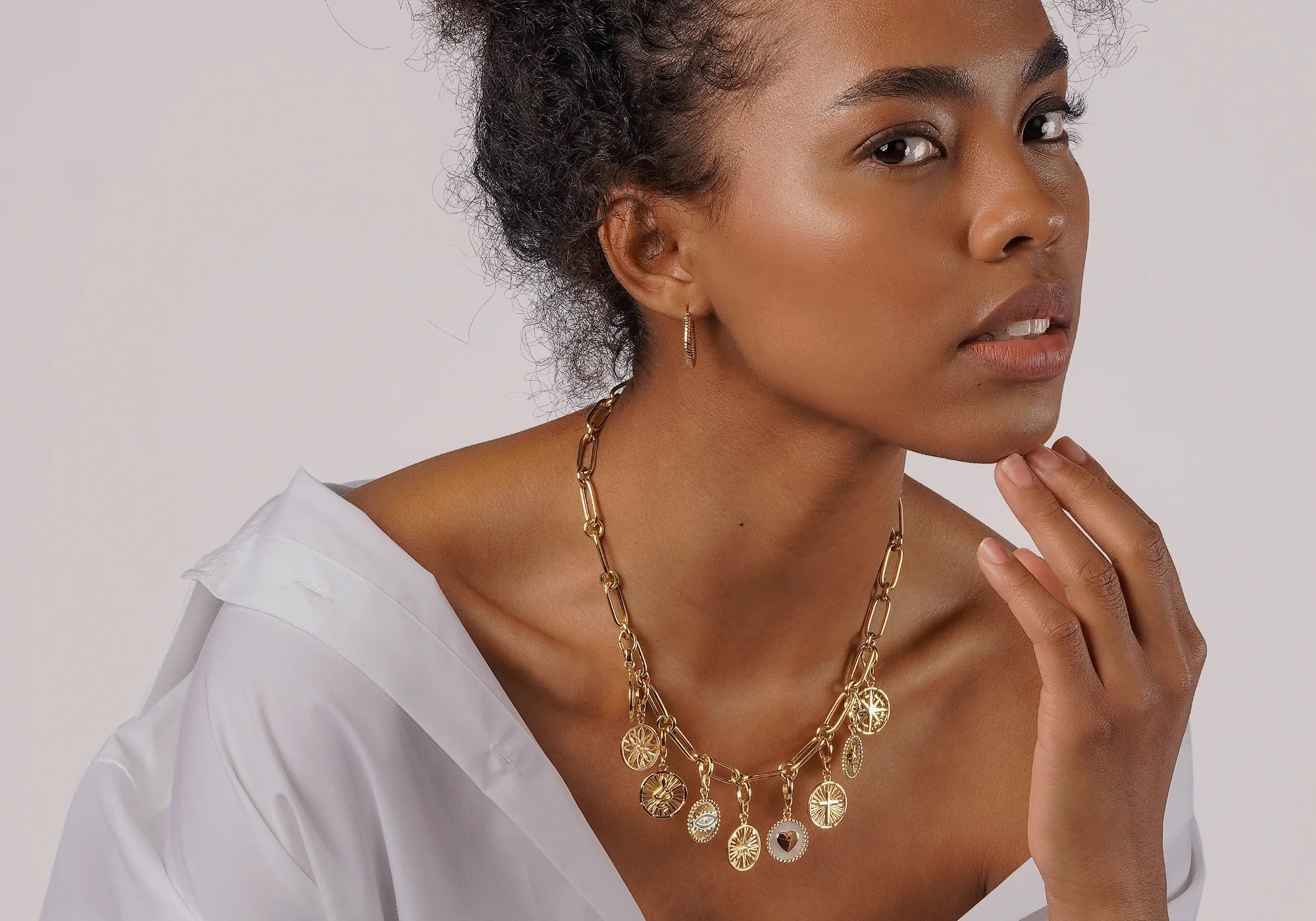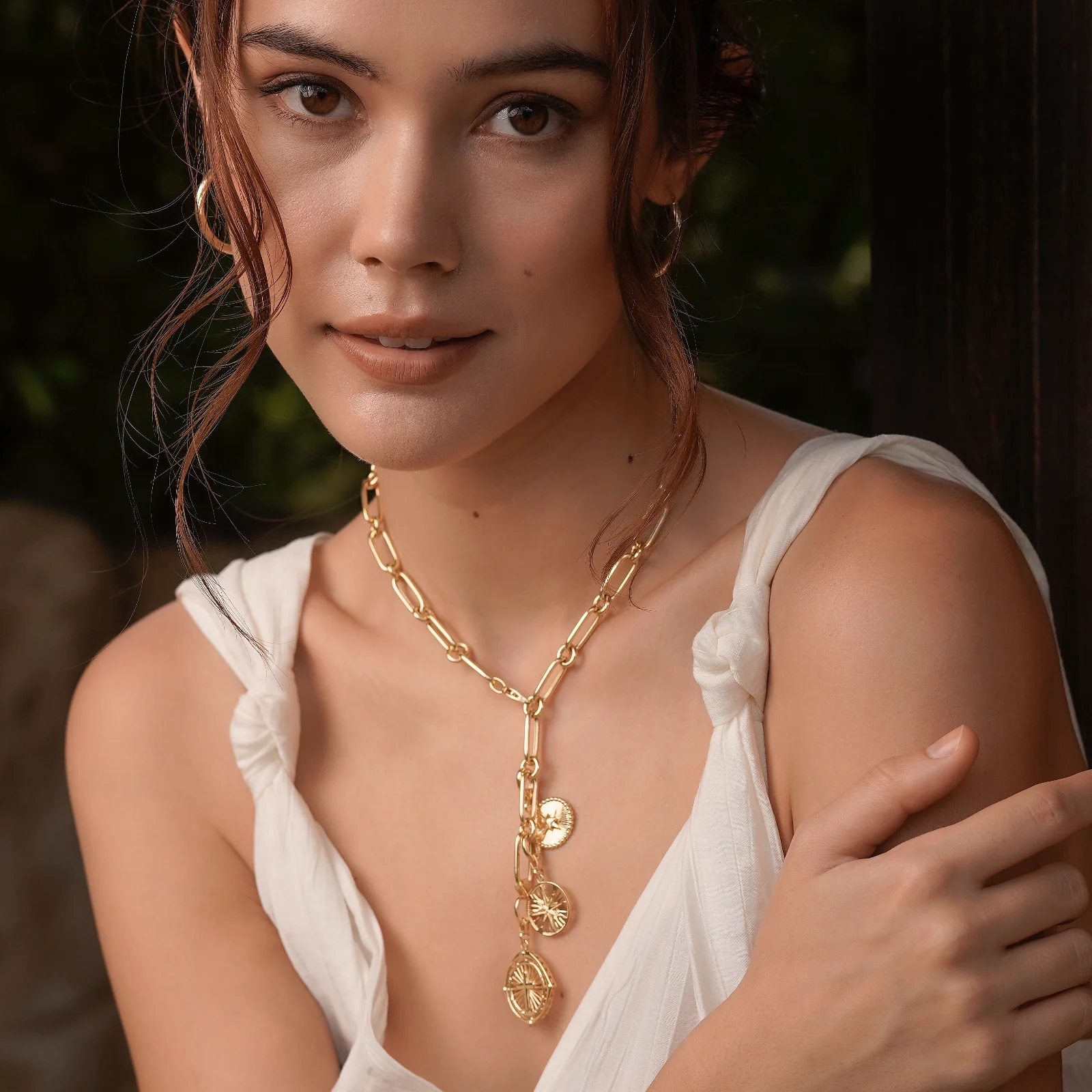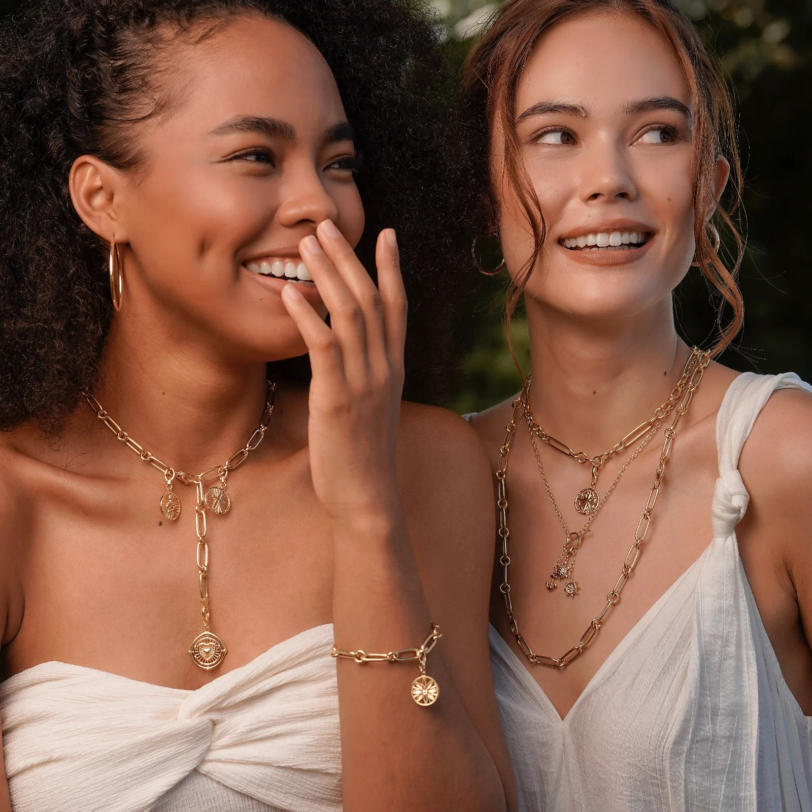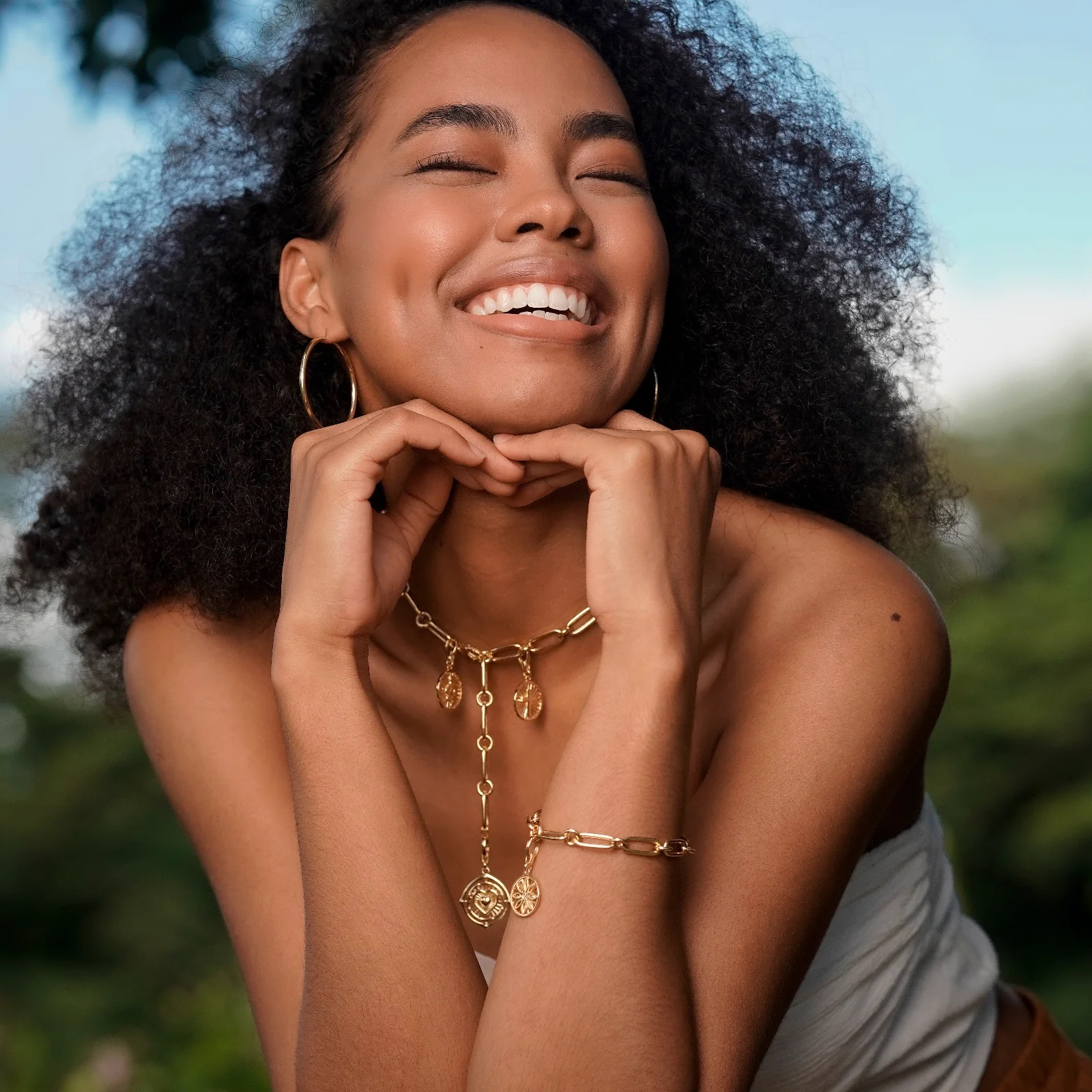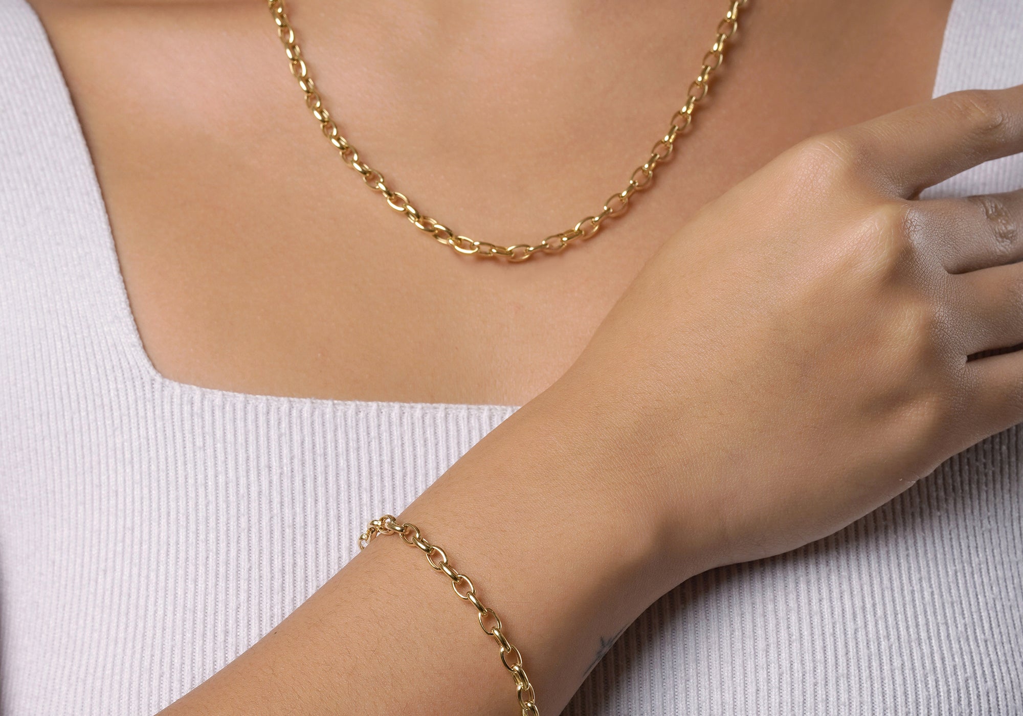 Embrace the role of the main character as you adorn yourself with the Miladay Chain and Bracelet, signature pieces crafted from a fusion of oval and round links — perfect for wearing alone or with your favorite pendants.