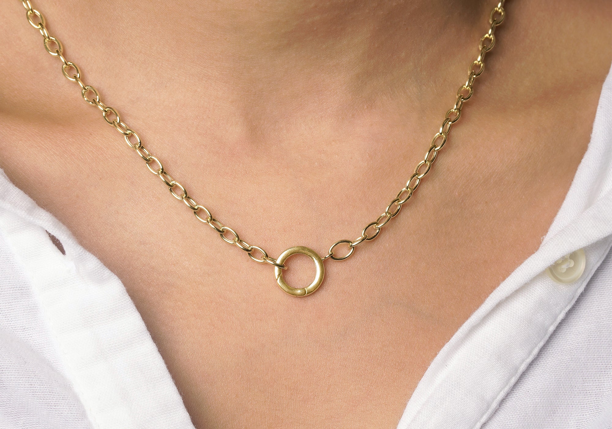 Dive into style with this necklace that features one fixed pendant and a round link that allows your story to continue in whatever way you wish.