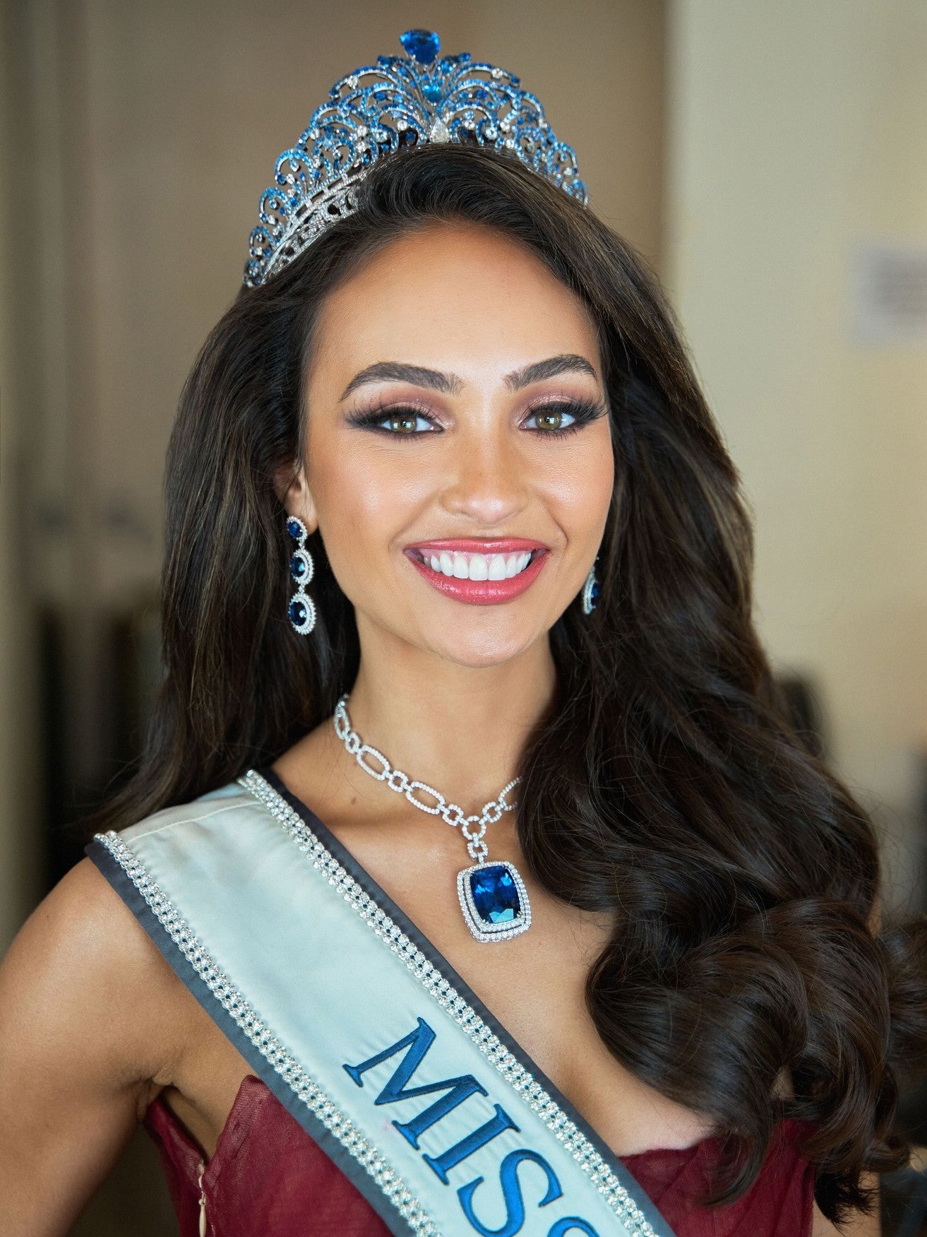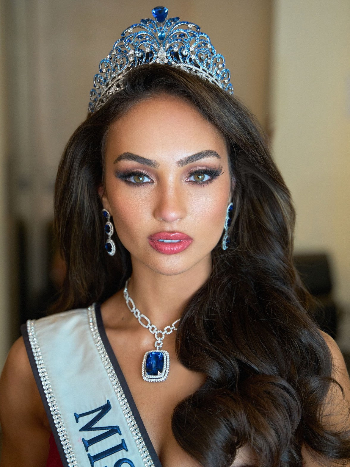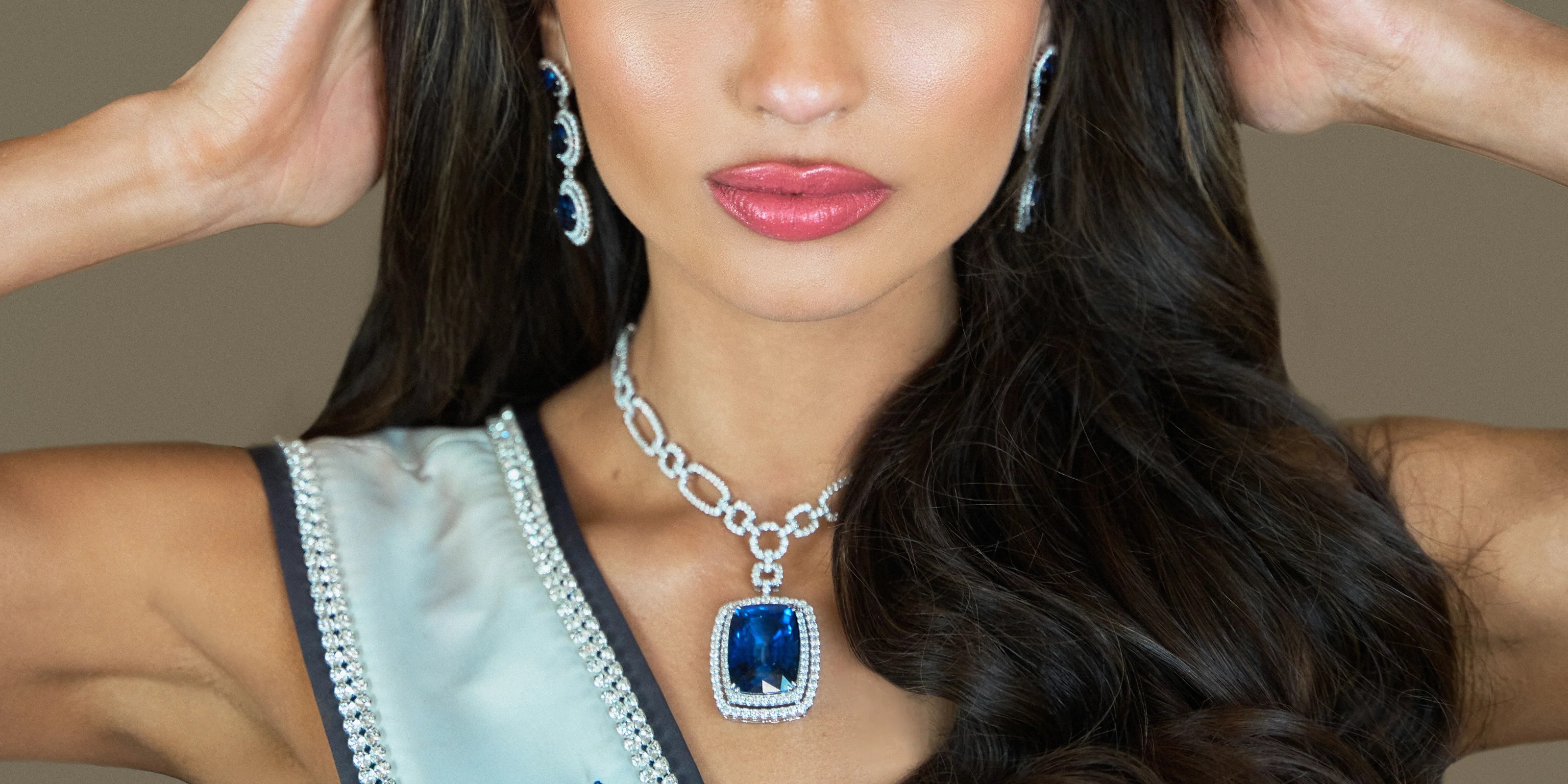 Miss Universe 2022, @rbonneynola embodies grace, confidence and elegance in our Blue Sapphire set, adorned with radiant diamonds.